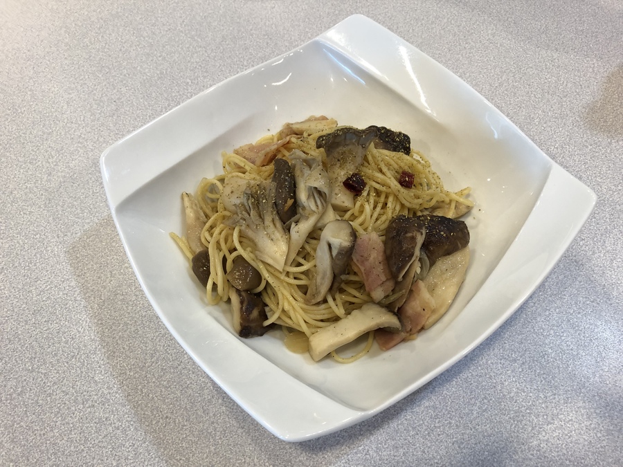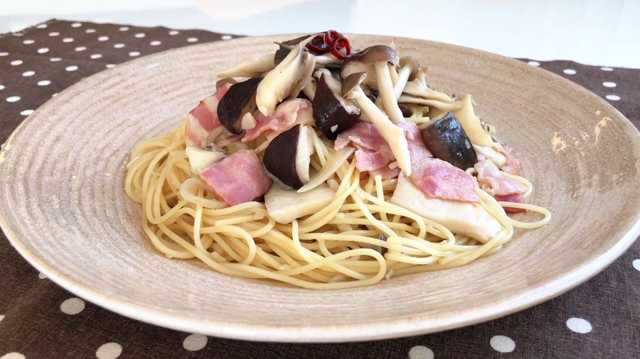 秋めいてきました。10月8日のレシピは「たっぷりきのこのペペロンチーノ」です。