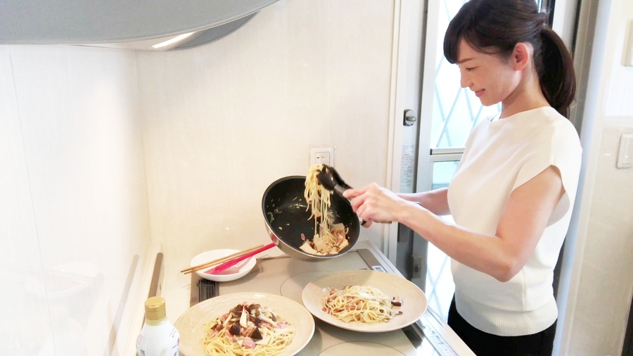 関先生「今回のペペロンチーノはきのこに味をつけて、その旨みをスパゲッティにからめるのがポイントなんです」
