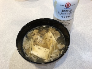 ⑤:豆腐を加え、煮立てないようにし、酒を入れて淡口醤油で味を調える。