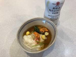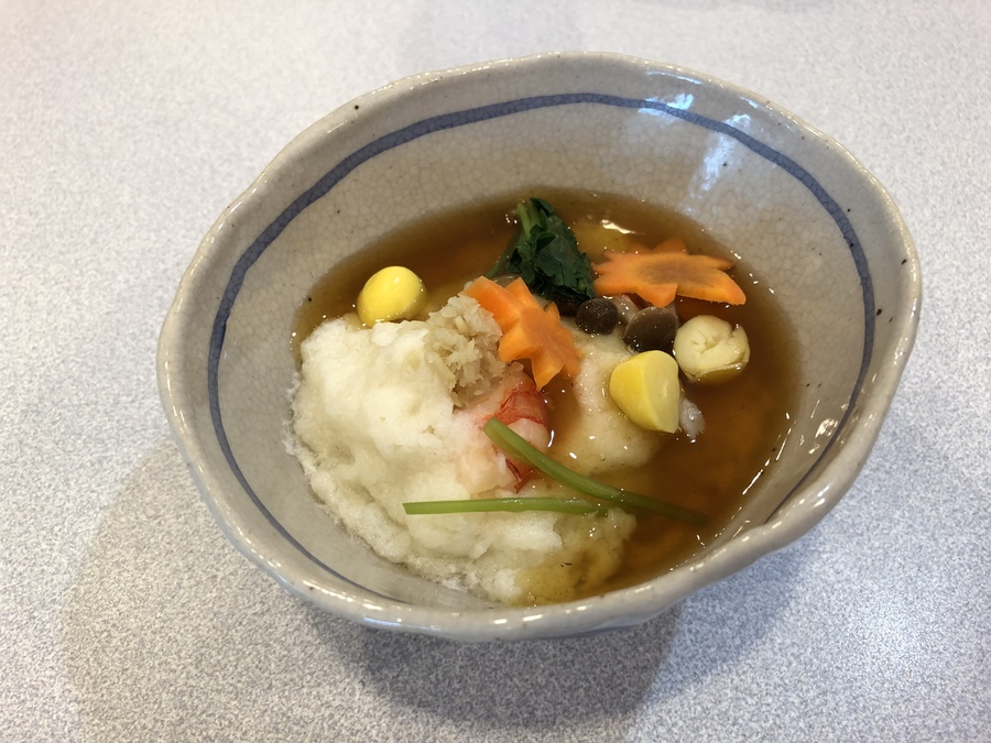①:かぶは洗ってすりおろし、軽く絞って卵白、すりおろした長芋、Ⓐの淡口醤油とみりんを入れて混ぜる。