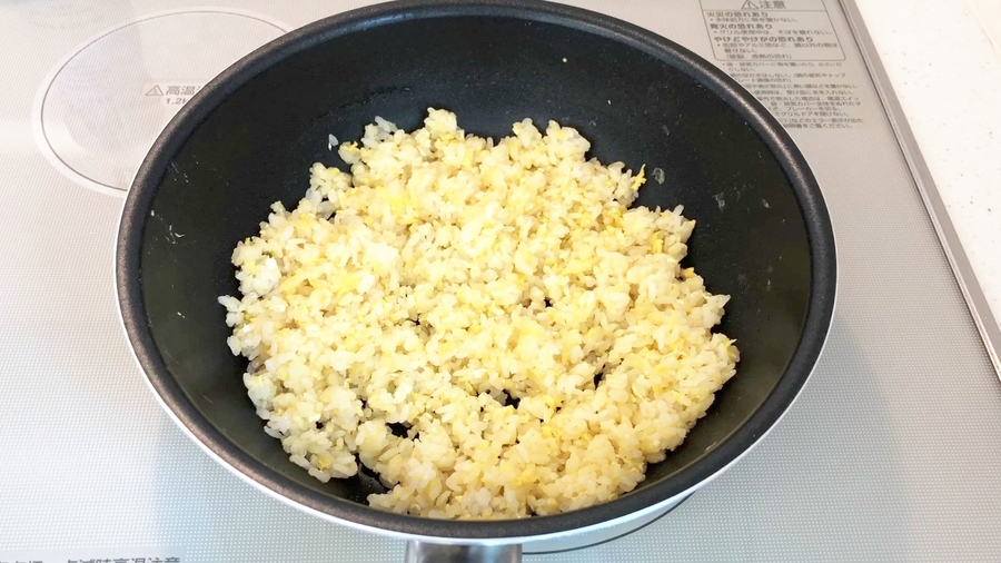 先にここまで作っておいて、ここからチャーハンを作っていきますよ。