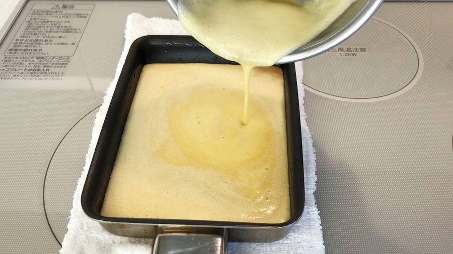 フライパンが熱すぎると、卵液を入れてすぐに焦げてしまいます。