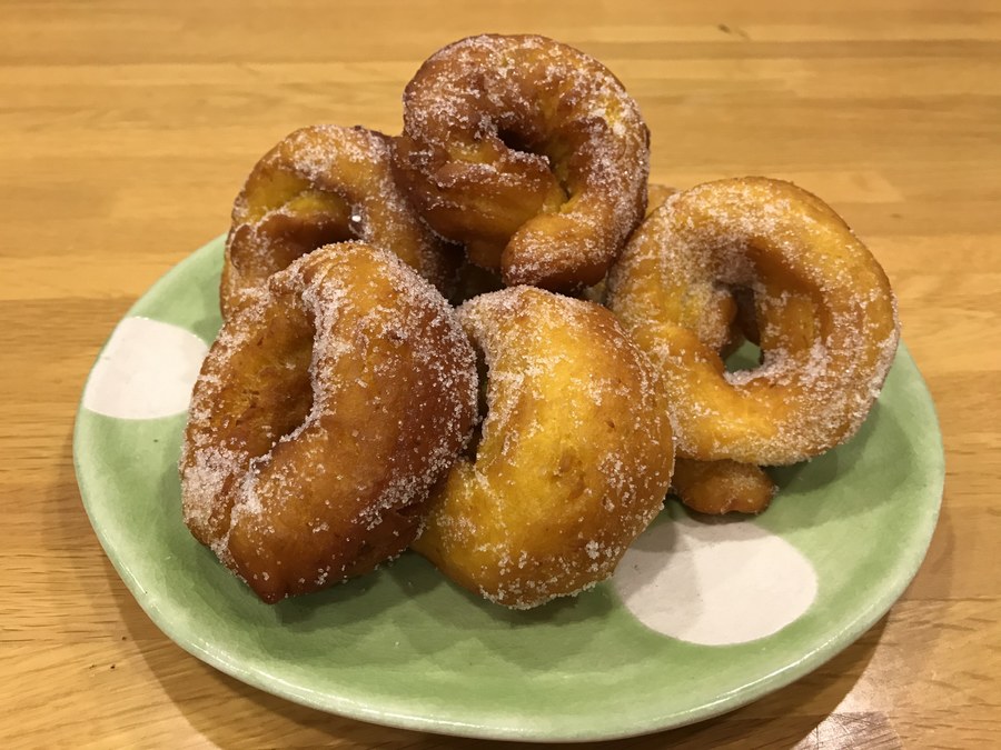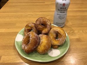リング状に成形し、揚げる。油の中に沈んで浮いてきたらひっくり返す。