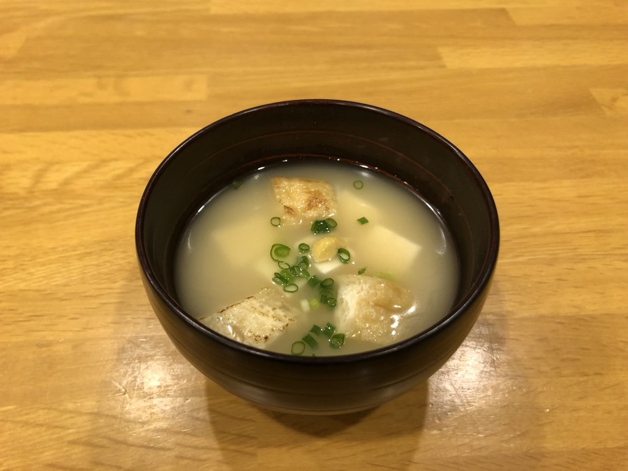 ⑤お椀に汁を注ぎ、薬味ネギとからしを少し添えて、