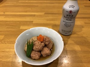 そこに淡口醤油大さじ3、みりん大さじ3入れて、そこにだんご(鶏、海老)を