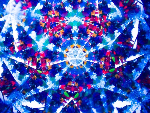 万華鏡の映像を全部見終わるのにかかる時間を計算した人がいるそうです。それによると、20個のビーズを入れて6秒ごとに変化をさせると、4628億年かかるんだとか。さらに万華鏡の魅力をもう一つ。