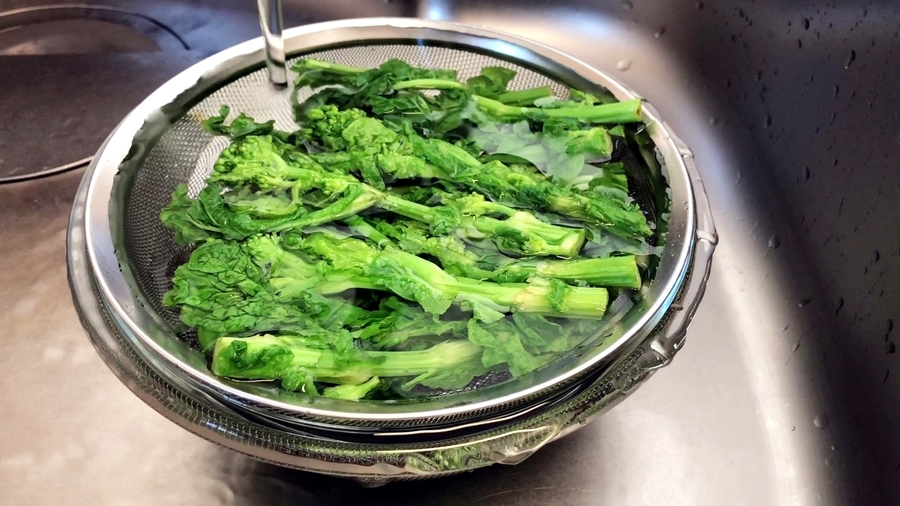 10秒ほど茹でてすぐに冷水にとって、冷まします。
