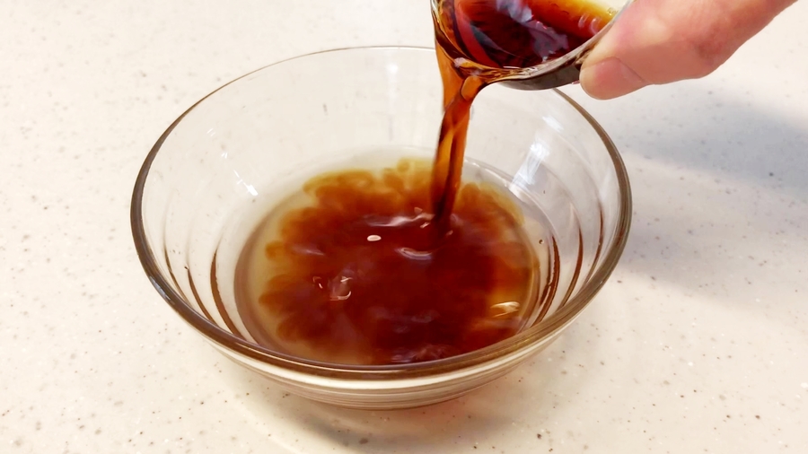 照り煮のタレとして淡口醤油大さじ2、砂糖大さじ1と1/2、酒大さじ1と1/2、みりん大さじ1と1/2、片栗粉小さじ1/5を混ぜておきます。