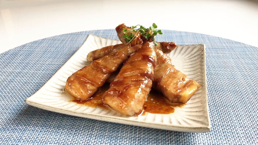3月31日のレシピはシャキシャキ食感がたまらない「肉巻きタケノコの照煮」です。