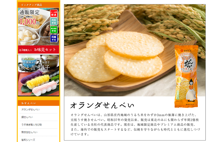 山形県のみならず、東北では知らない県はないというほど、すみずみまで販売されている「オランダせんべい」。