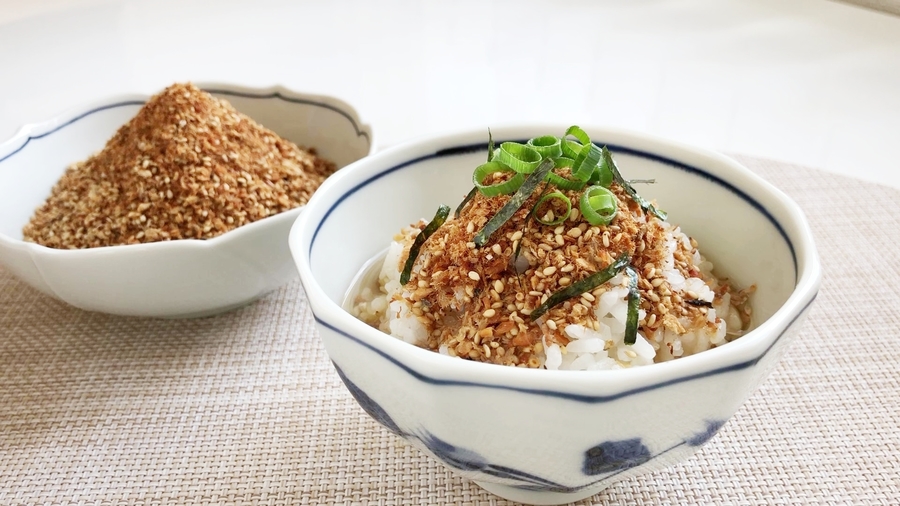 ご飯をやや大きめの茶碗によそい、鮭とふりかけ、好みの薬味を添え、熱い番茶をかけたら完成です。