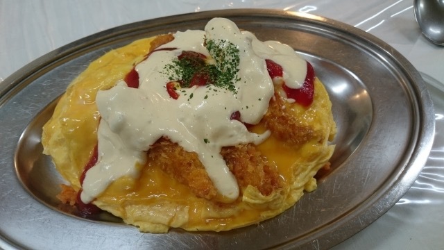 店によって、いろいろ個性を出しているようです。ちなみに「グリルオーツカ」では、カジキマグロのフライと小エビのフライを乗せているそうです。