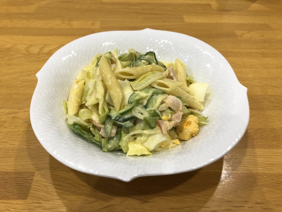 マスタード小さじ1~、砂糖小さじ1を混ぜ、①②③④を加えてよく和え、