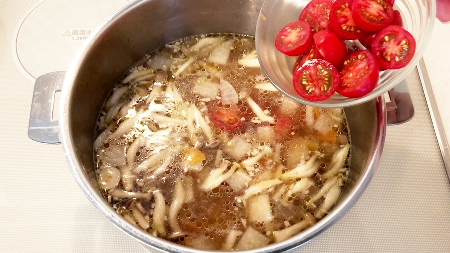 桐生「そうですね。根菜や香味野菜の旨味がたっぷり出ていますよね。あと、トマトの酸味と淡口醤油が合う!」