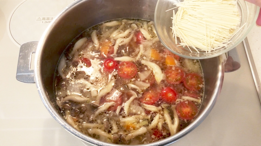 トマトを入れて、さらに2~3分クツクツ煮ます。