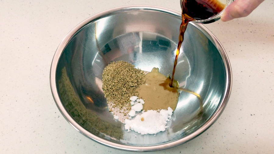 ボウルに、練り胡麻大さじ1、すり胡麻大さじ1を入れて先に混ぜます。