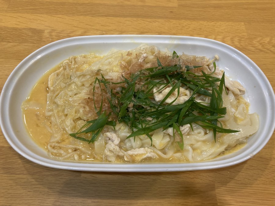 桐生「きしめんもちもちで美味しいです。生パスタみたい!和風のカルボナーラ」