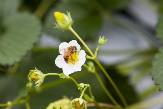 ミツバチは花の周りを回って、花粉を食べたり蜜を吸います。その時に、どうしても花を傷つけてしまうそうで、イチゴなどでは奇形果ができてしまうんだとか。