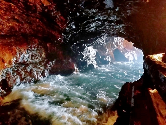 洞窟のために中で反響する分、外の岩に打ちつける波よりもかなり大きく聞こえるようですが、いったいどんな音なのでしょうか。