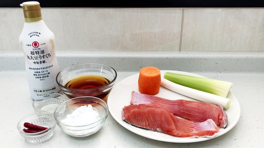 ・淡口醤油 大さじ1 もしくは大さじ1と1/2(お好みでどちらかの分量を使って下さい)
