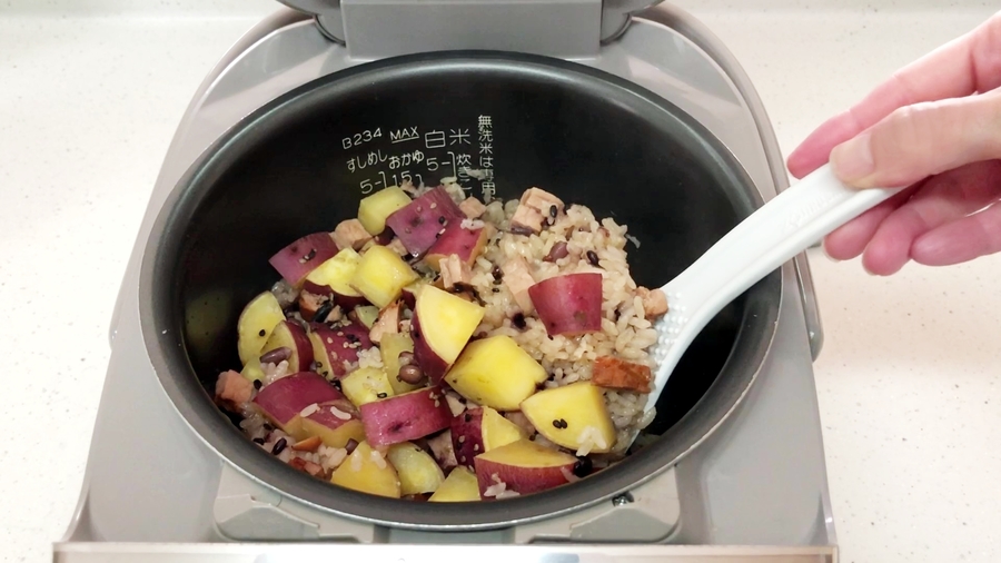 11月3日のレシピはゴロゴロの具材で食べ応えアップ!「雑穀入りサツマイモご飯」です。