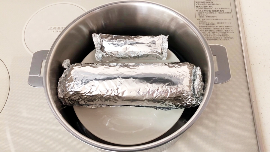 タネが余ったら、こちらはアルミホイルにくるんで蒸すとソーセージのようになり、無駄なく召し上がれます。