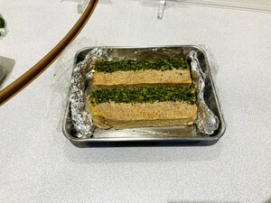 12×8センチの焼いたものを半分に切り、12×4センチのものを2つ作ります。