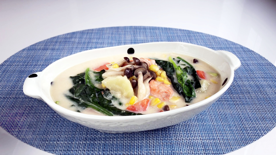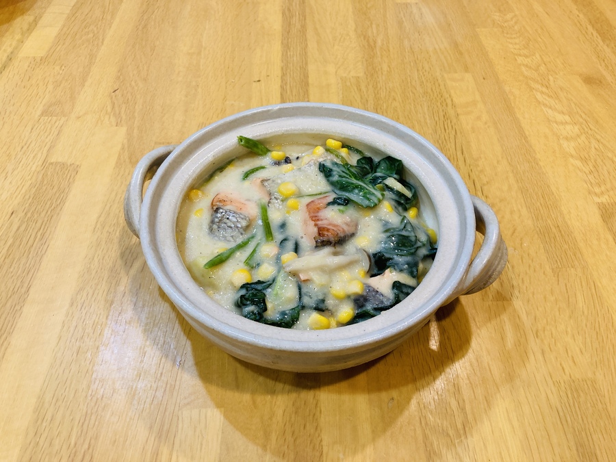 2月9日のレシピは黄色と緑のコントラストがきれい「コーンクリーム鍋仕立て」です。