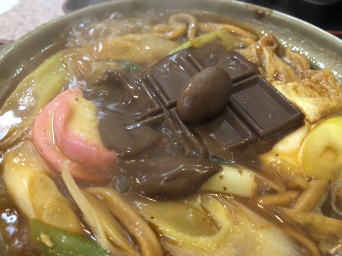 ただ、ネットで調べても出てこないという、謎のチョコ味噌煮込みうどん。