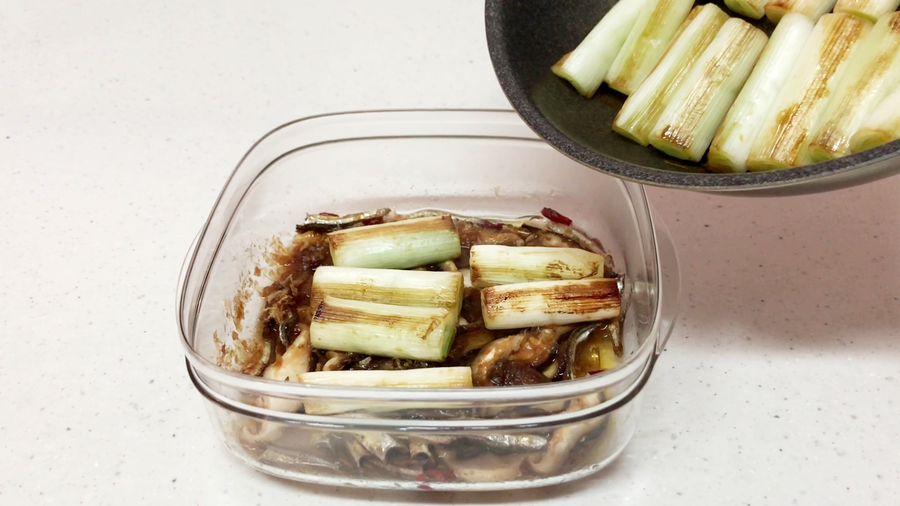 2月23日のレシピは材料、工程ともに超簡単「焼き白ネギのタレ漬」です。