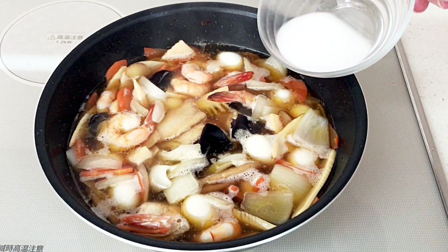 水溶き片栗粉でとろみをつけます。