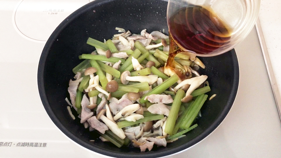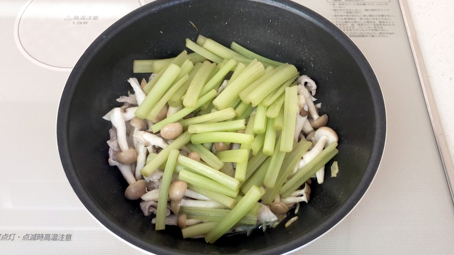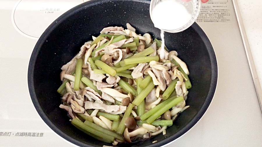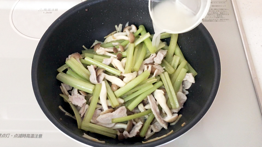 続いて【C】を入れて、さらに1分加熱し、味を含ませます。