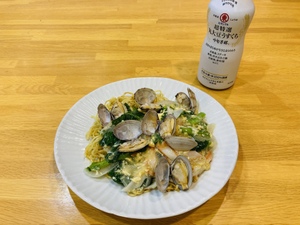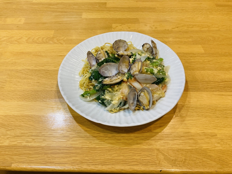 ⑥②の麺に⑤をかけ、取り出しておいたあさりを散らします。