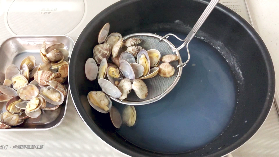 *あさりの砂出しは1晩、塩水につけてください。