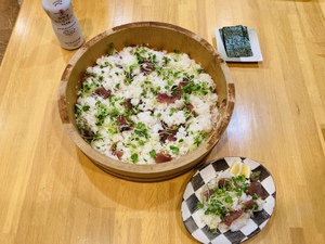 *すし桶がないときはバットなど、ご飯を冷ましやすいものを選んでください。
