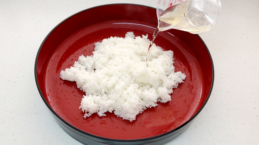 *すし桶がないときはバットなど、お米が冷ましやすいものを選んでください。すし桶の場合同様に米を盛る前に合わせ酢を塗っておいてください。