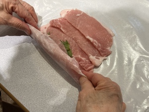 *肉を巻くとき、クッキングシートを巻き込まないように注意してください。