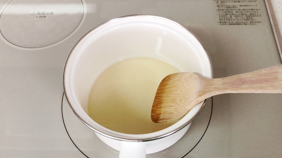 【A】(水80㏄、淡口醤油小さじ1、砂糖40g)を小鍋に合わせて、中火にかけます。