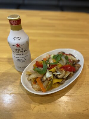 タマネギ、パプリカの順に炒めます。この時炒め過ぎないようにしてください。
