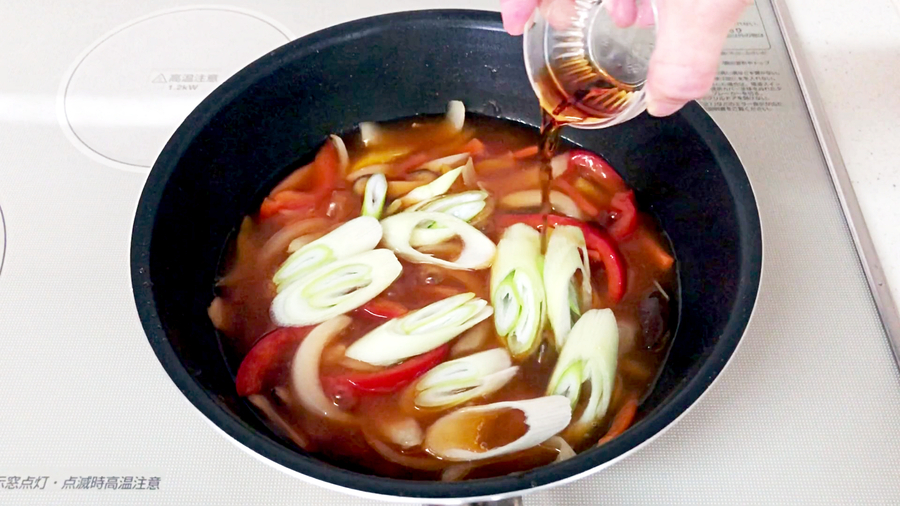 そこに【B】を入れて煮立てて味を調えます。