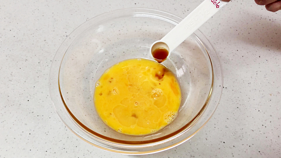 ボウルに卵2個を入れて菜箸で溶きほぐし、【A】(淡口醤油小さじ1/2、酒小さじ1)でうす味をつけます。