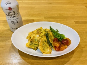 淡口醤油小さじ1を加えてよく混ぜ、卵液を作ります。