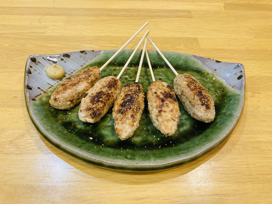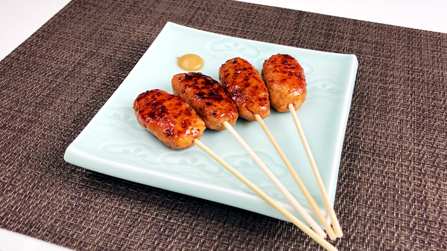 竹串にさし、皿にもり、フライパンに残っているタレをかけて完成です。