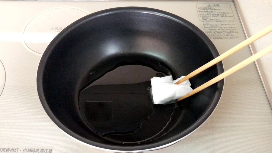 フライパンに油少々を入れて熱し、しっかり油をなじませて余分な油をふき取り、火を止めておきます。