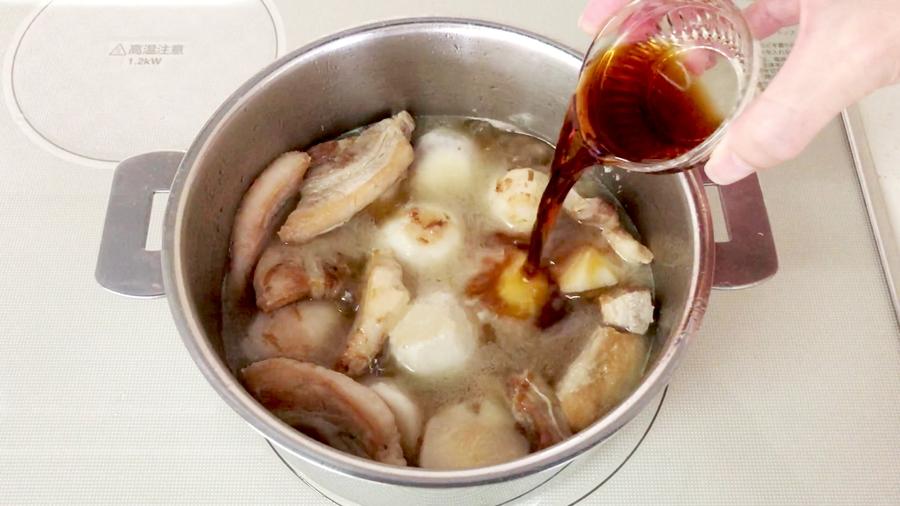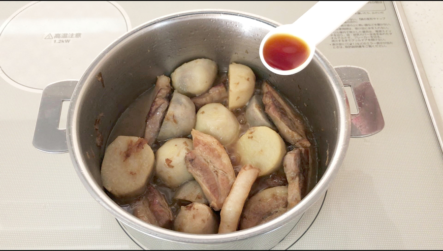 そこに【B】(淡口醤油大さじ2)を入れ、さらに5分ほど煮ます。