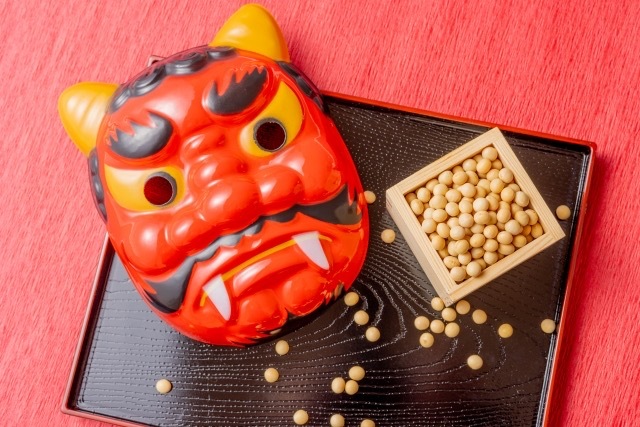 出て行ってもらうには鬼の目に豆を当てたらいいといわれています。鬼は魔物です。魔物の目に豆をあてたらいいということです。