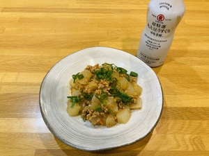 最後、香り付けで淡口醤油小さじ1をさっと混ぜます。