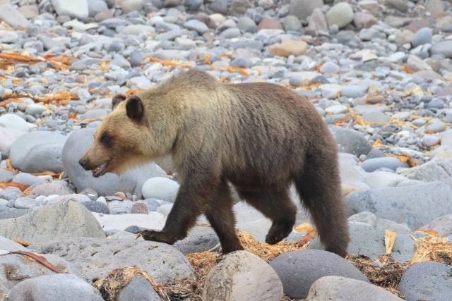 ヒグマの食べ物の8~9割は植物性のもの。残り1~2割が鮭、鱒などの魚と、ハチやアリなどの昆虫だそうです。