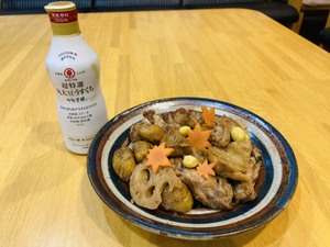 ⑥⑤を器に盛り、ぎんなんともみじ人参を飾ります。