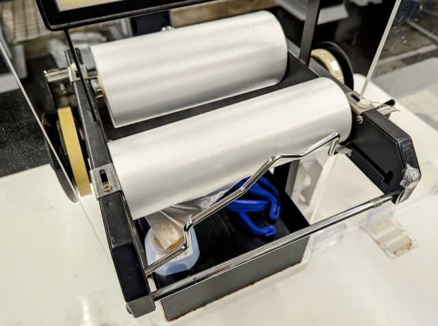 以前は、袋詰めをする台に水を含ませたスポンジが置いてありましたが、現在は新型コロナウイルスの感染拡大を防ぐために、すべて撤去されてしまっています。